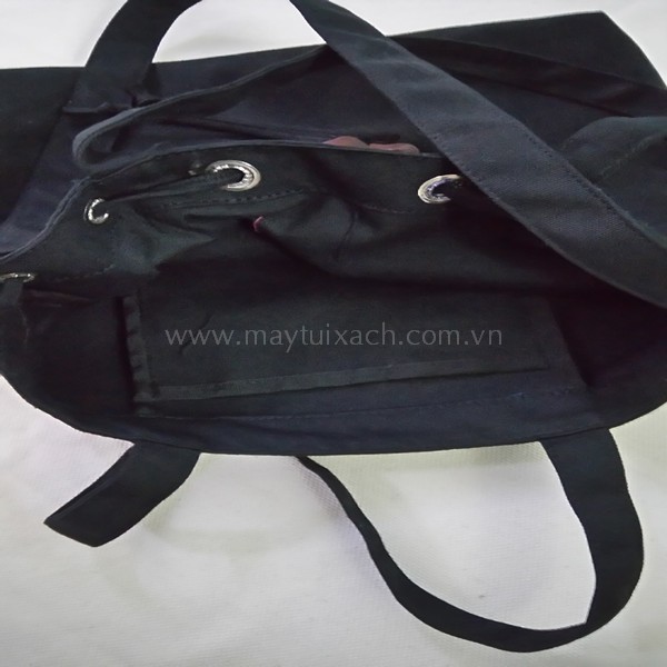 Chất liệu: Vải bố cotton màu xanh đen, túi có 1 ngăn chính tiện dụng, bên trong có mổ túi con. Đặc biệt, túi có cả quai xách và quai đeo dễ sử dụng.