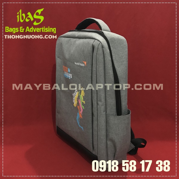 Balo laptopBalo laptop là sản phẩm thường xuyên may nhất. Vì hiện nay công nghệ quá phát triển, giá laptop quá rẻ đến độ gần như mọi người đều có laptop. Nên tặng balo đựng laptop thì hầu hết các khách hàng đều có thể sử dụng được. Balo laptop làm quà tặng không chỉ có công ty, cửa hàng bán laptop mới tặng được mà hầu hết các công ty đều may balo laptop số lượng lớn để tặng.